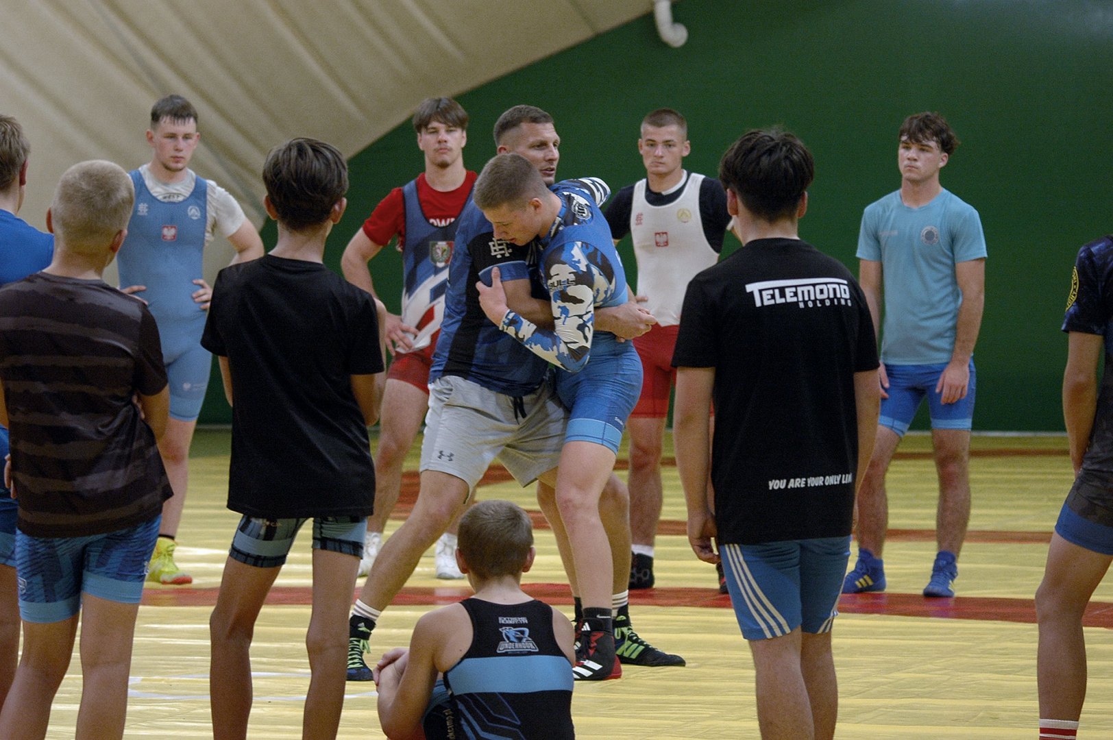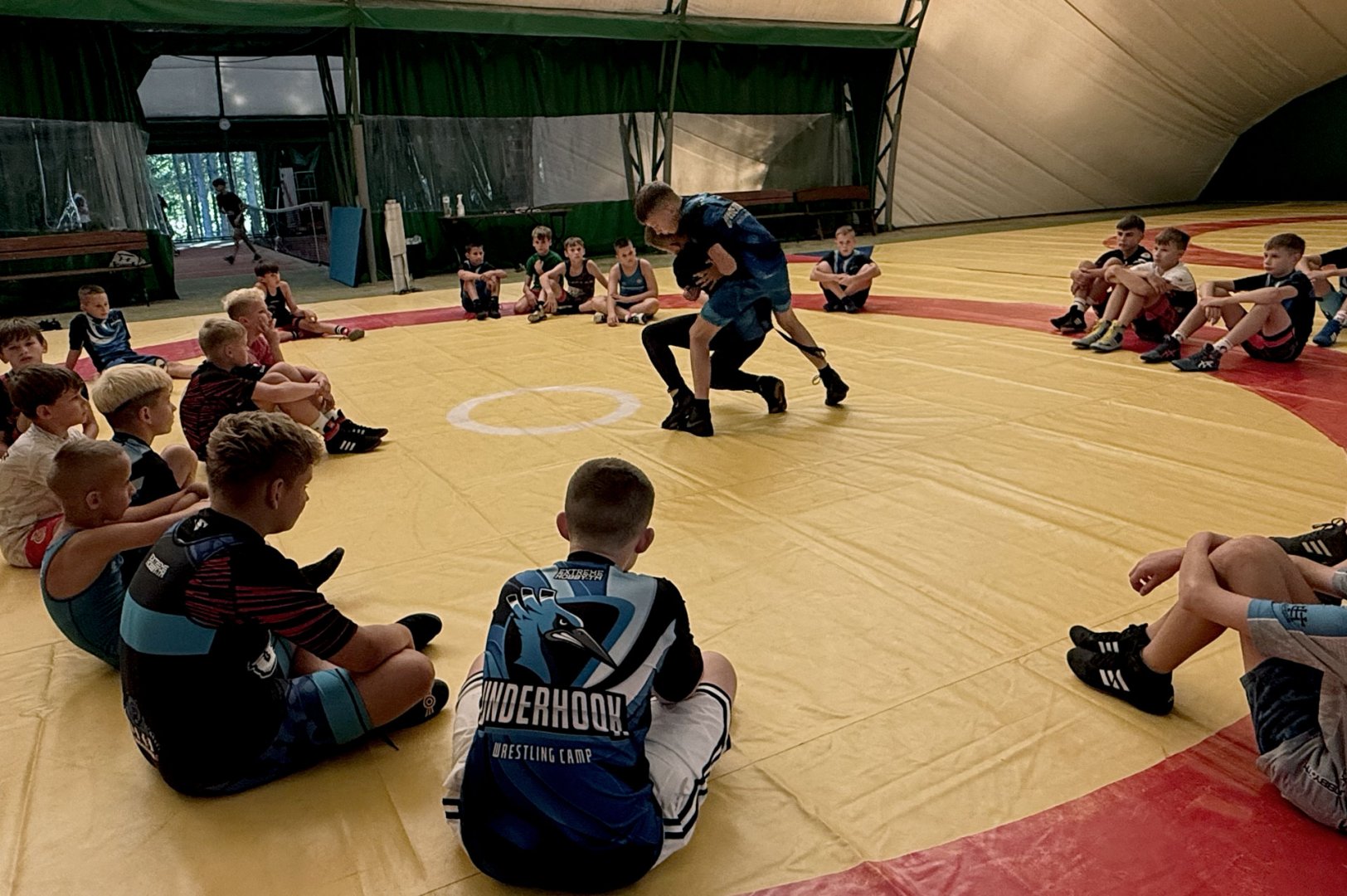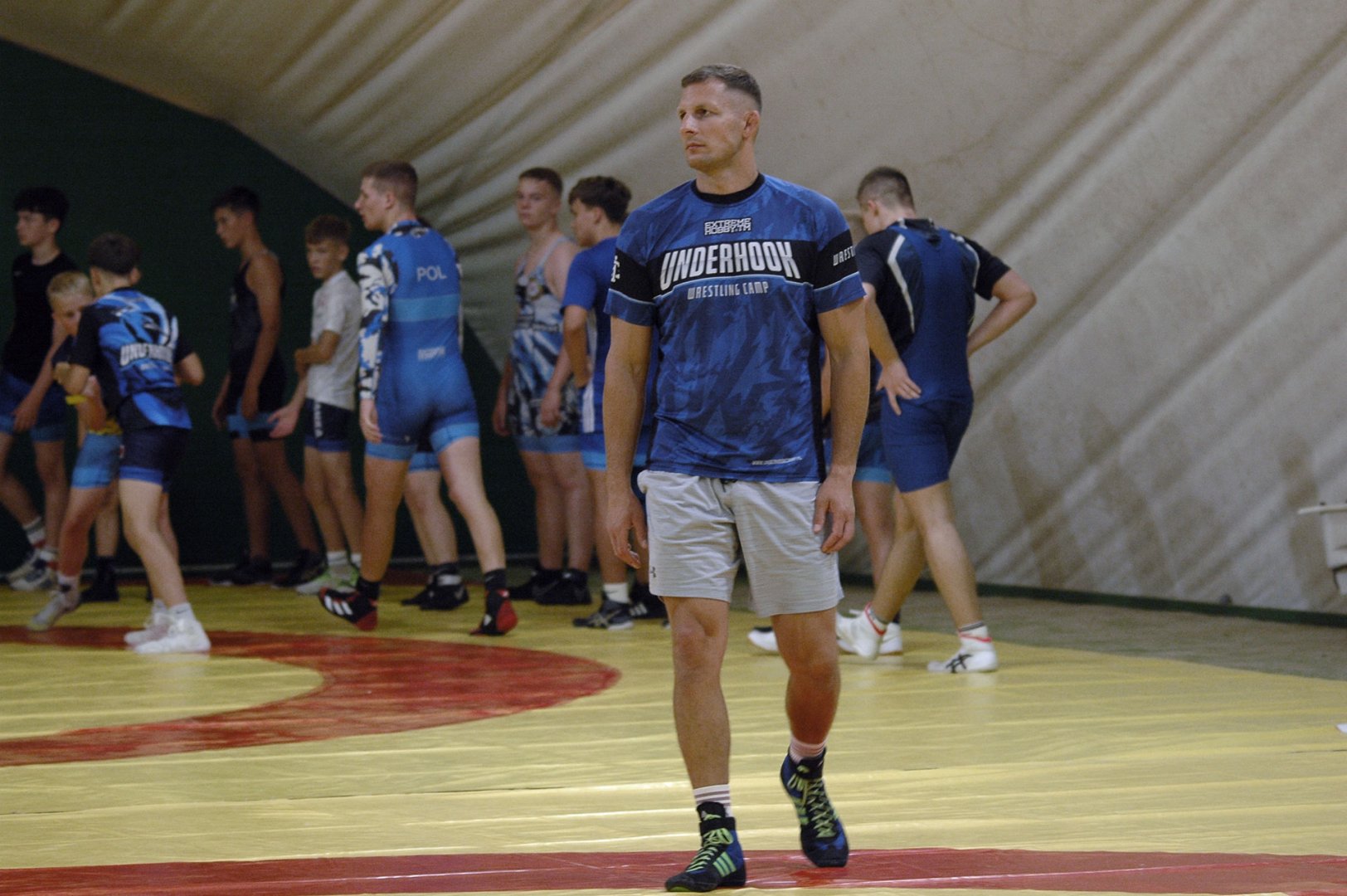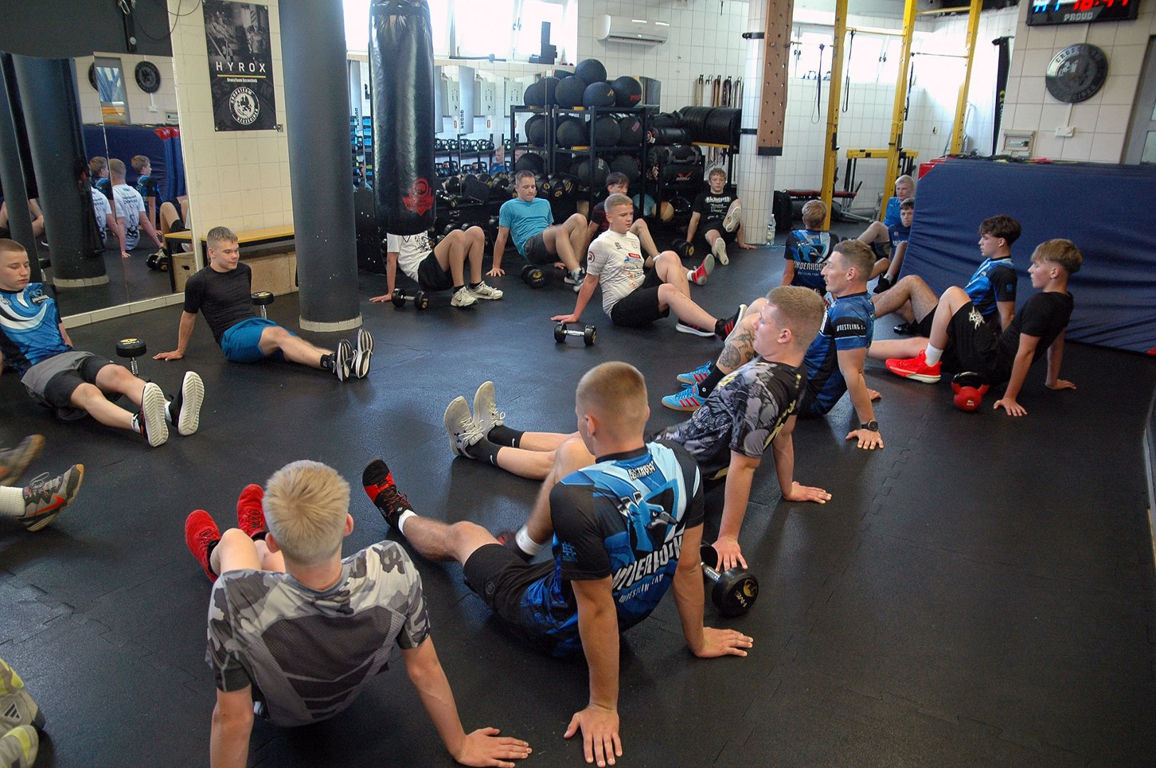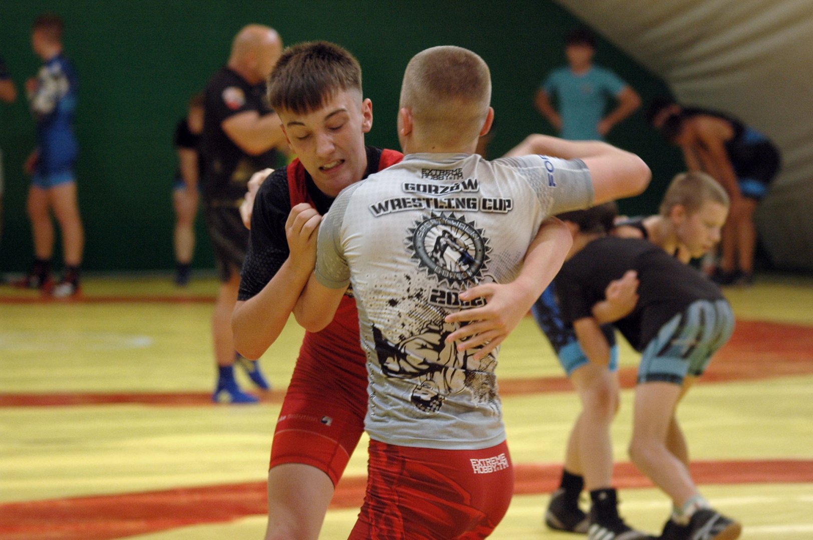 Grupa starszych zawodników pod wodzą trenerów Radosława Grzybickiego, Macieja Korochody i Mariusza Torbiczuka. rozpoczęła dzień zajęciami na macie o godzinie 11:00.