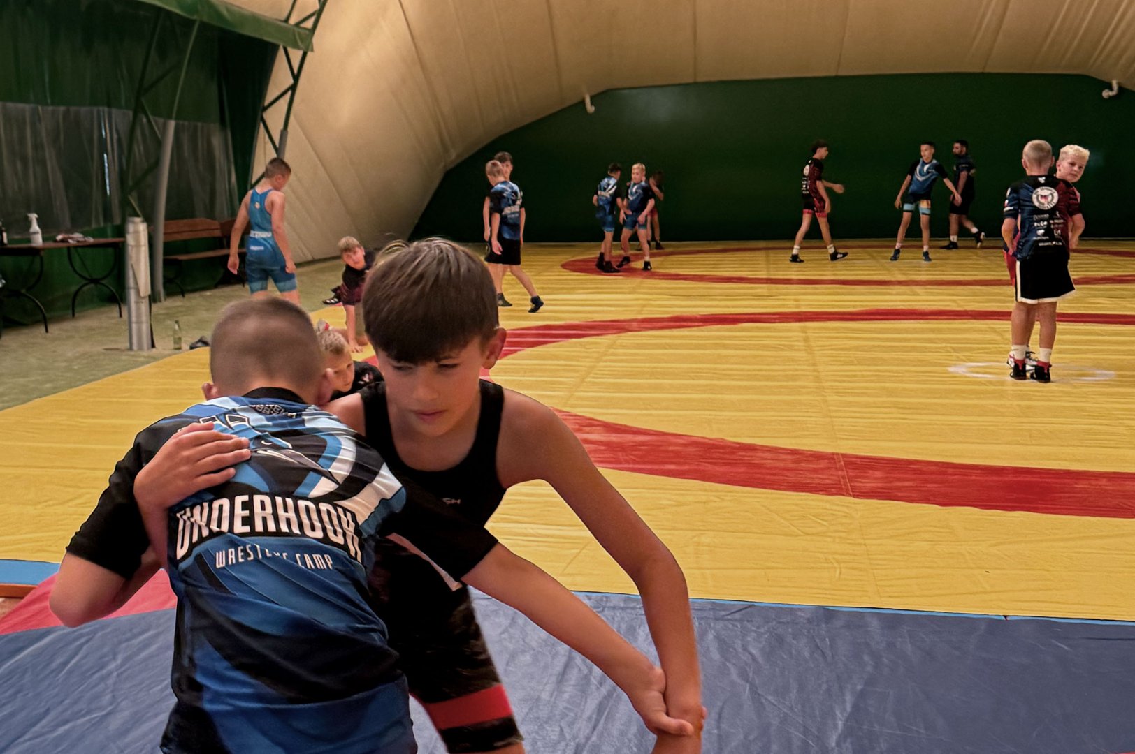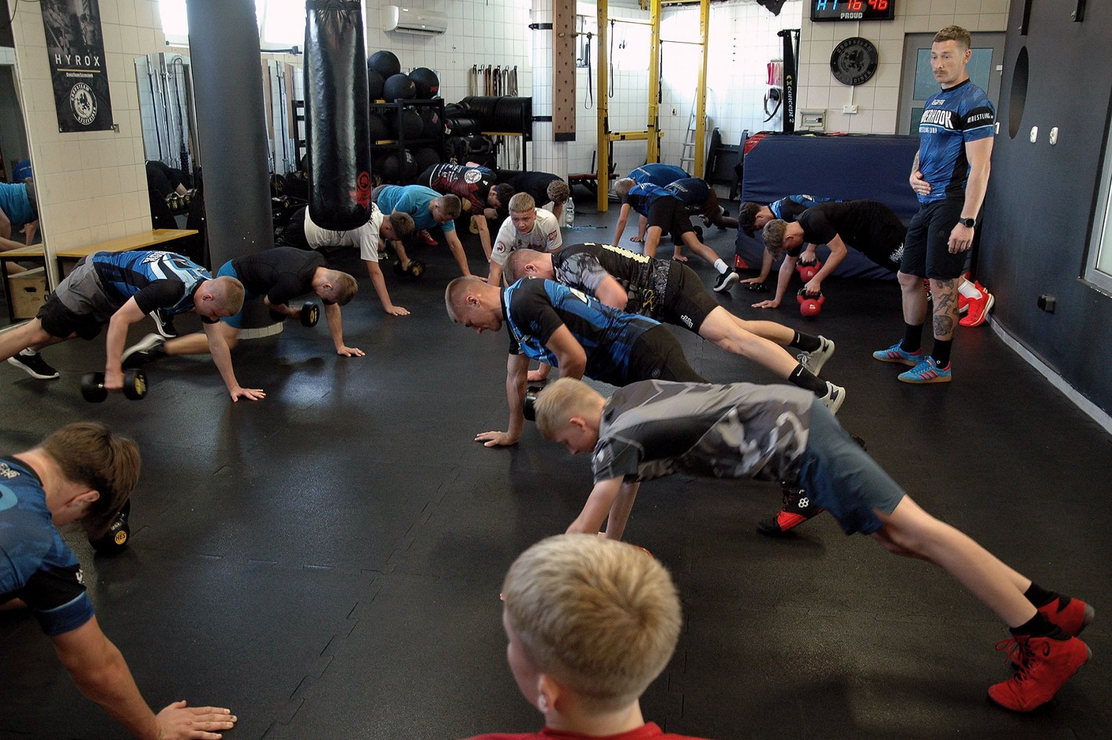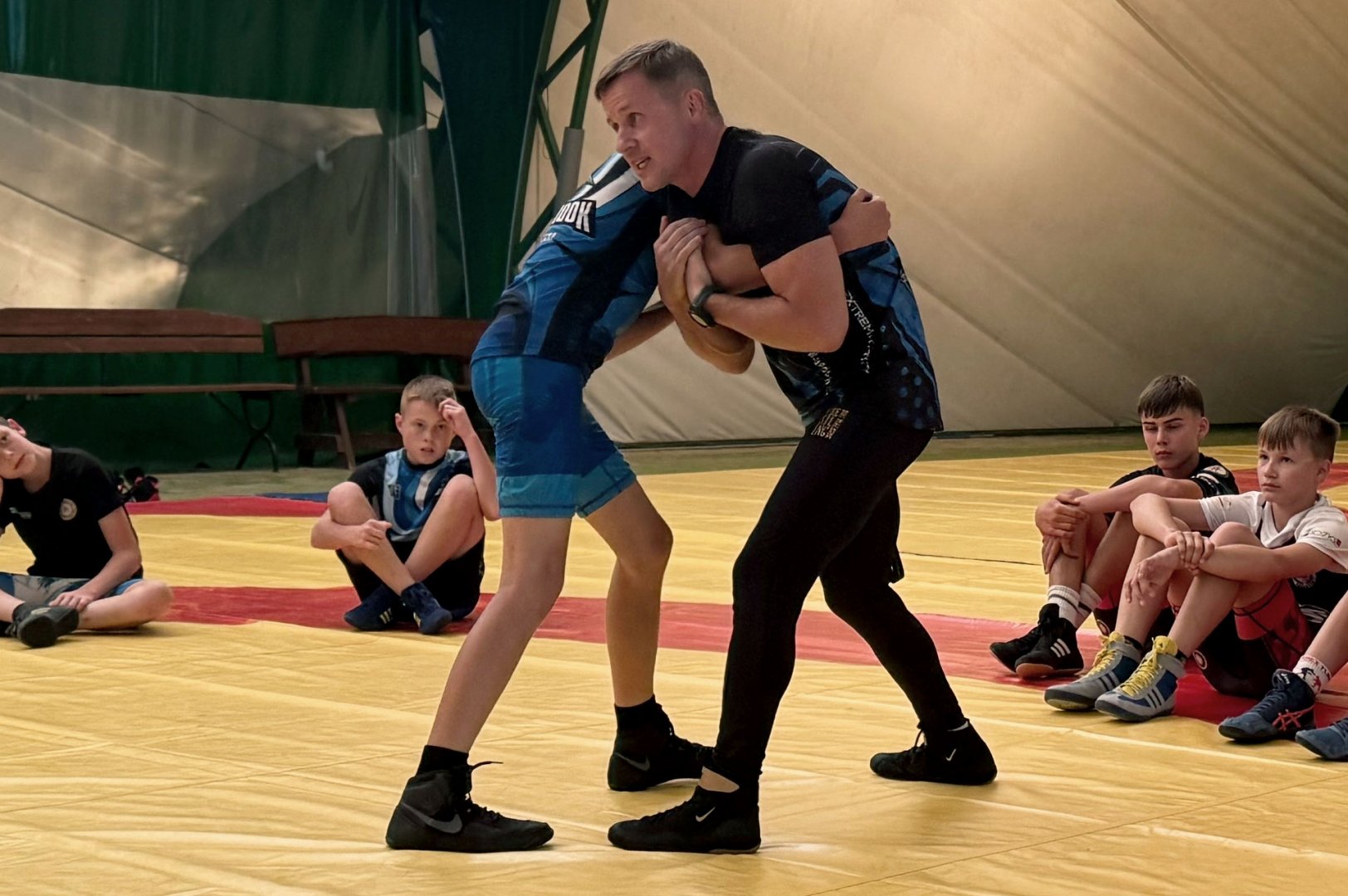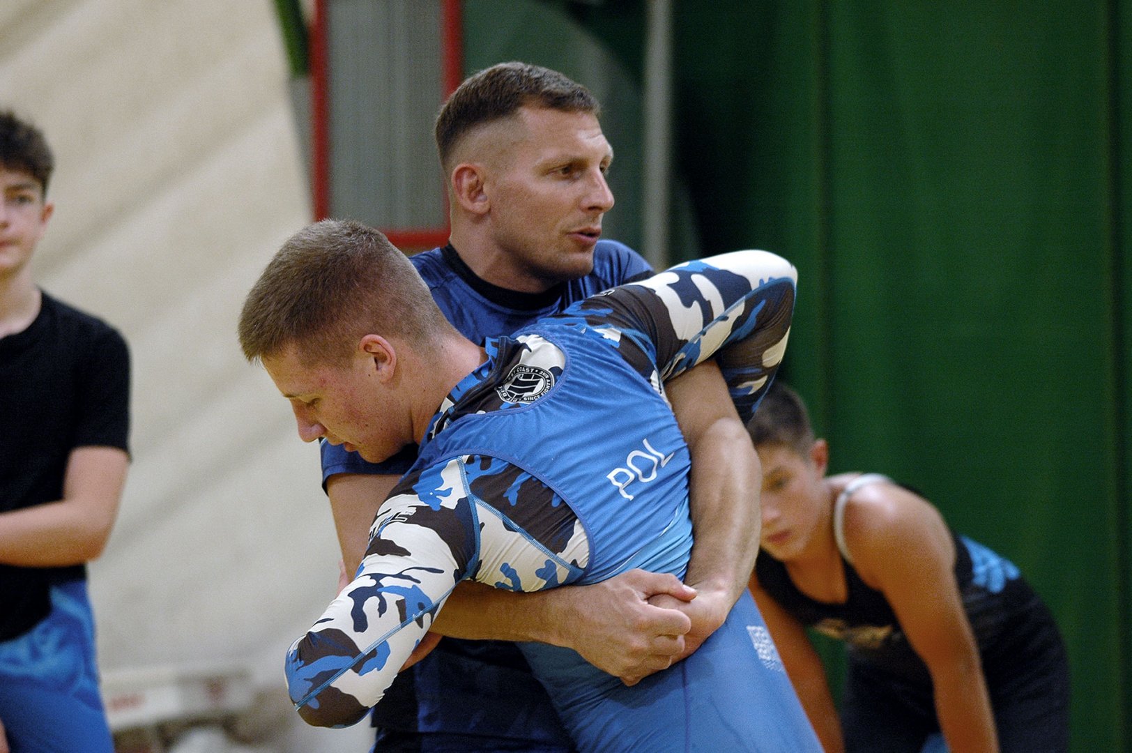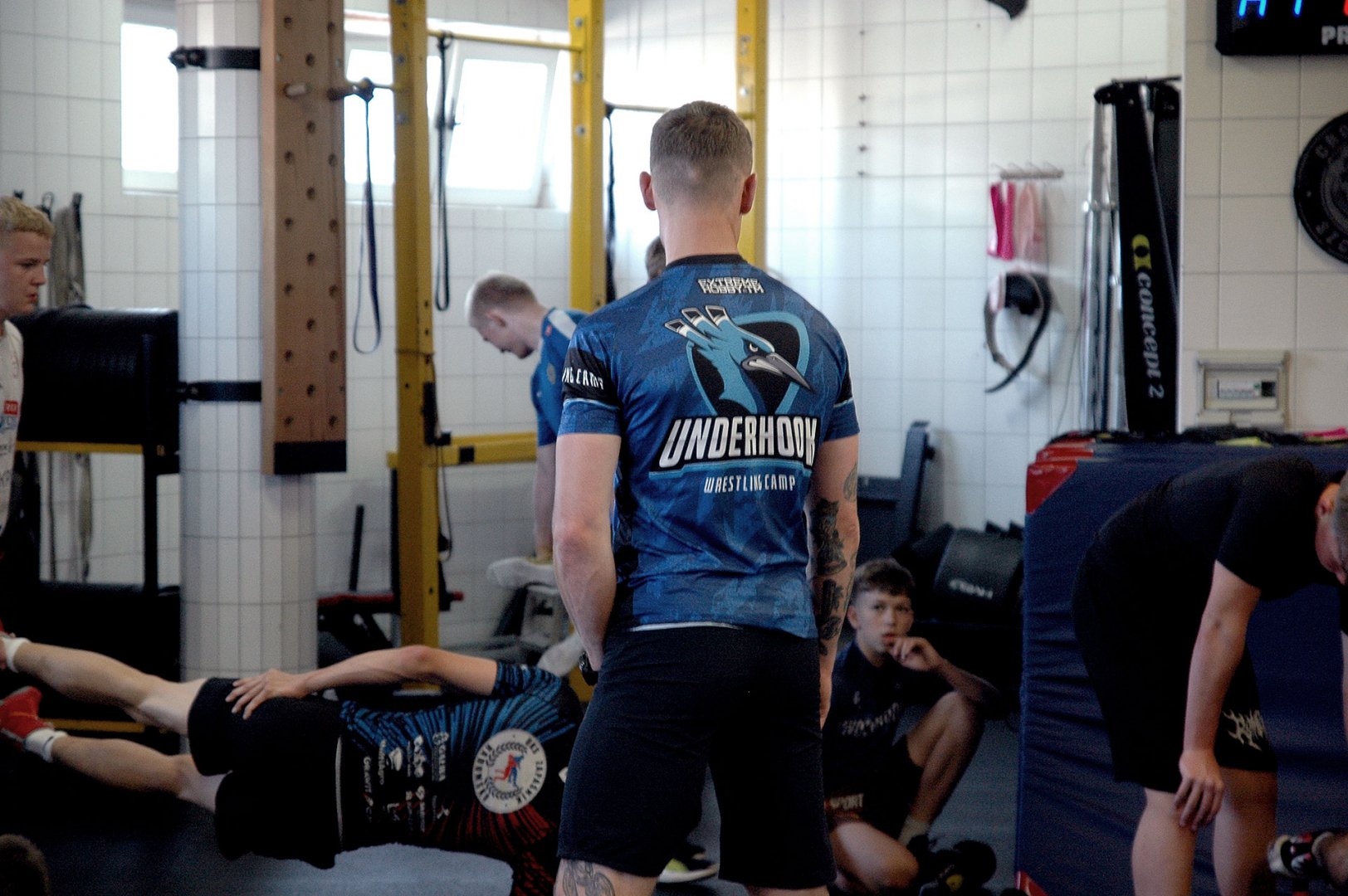 Grupa starszych zawodników pod wodzą trenerów Radosława Grzybickiego, Macieja Korochody i Mariusza Torbiczuka. rozpoczęła dzień zajęciami na macie o godzinie 11:00.