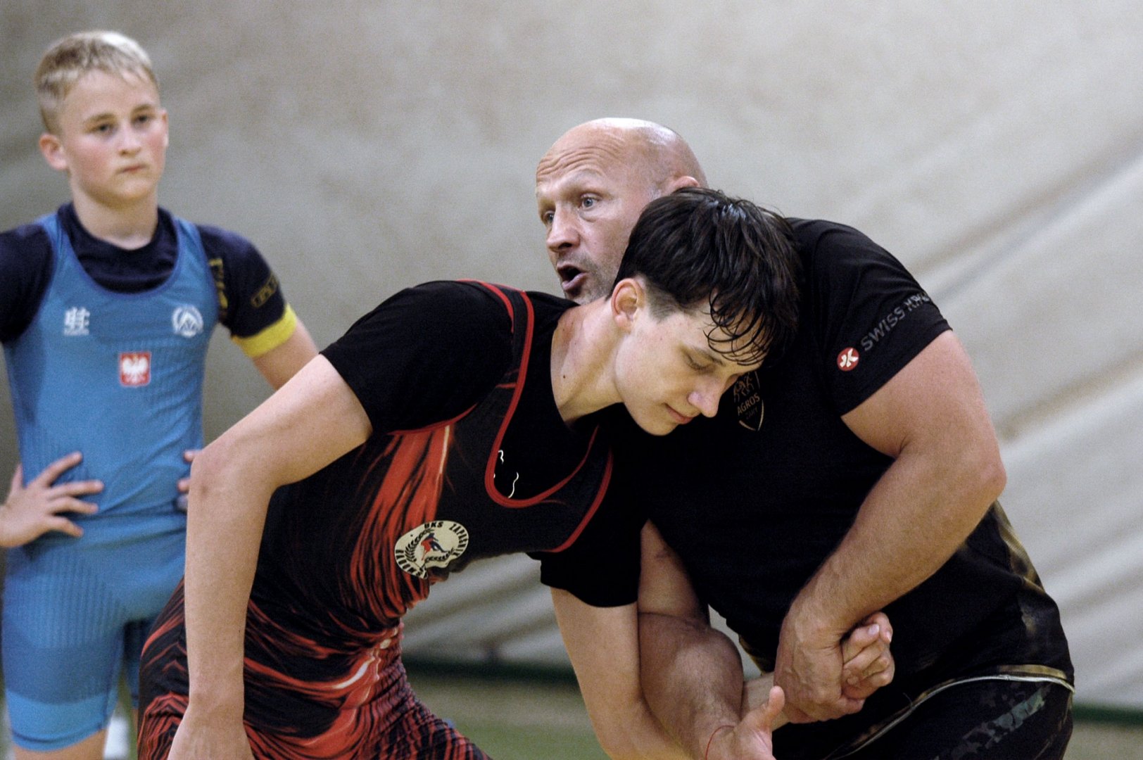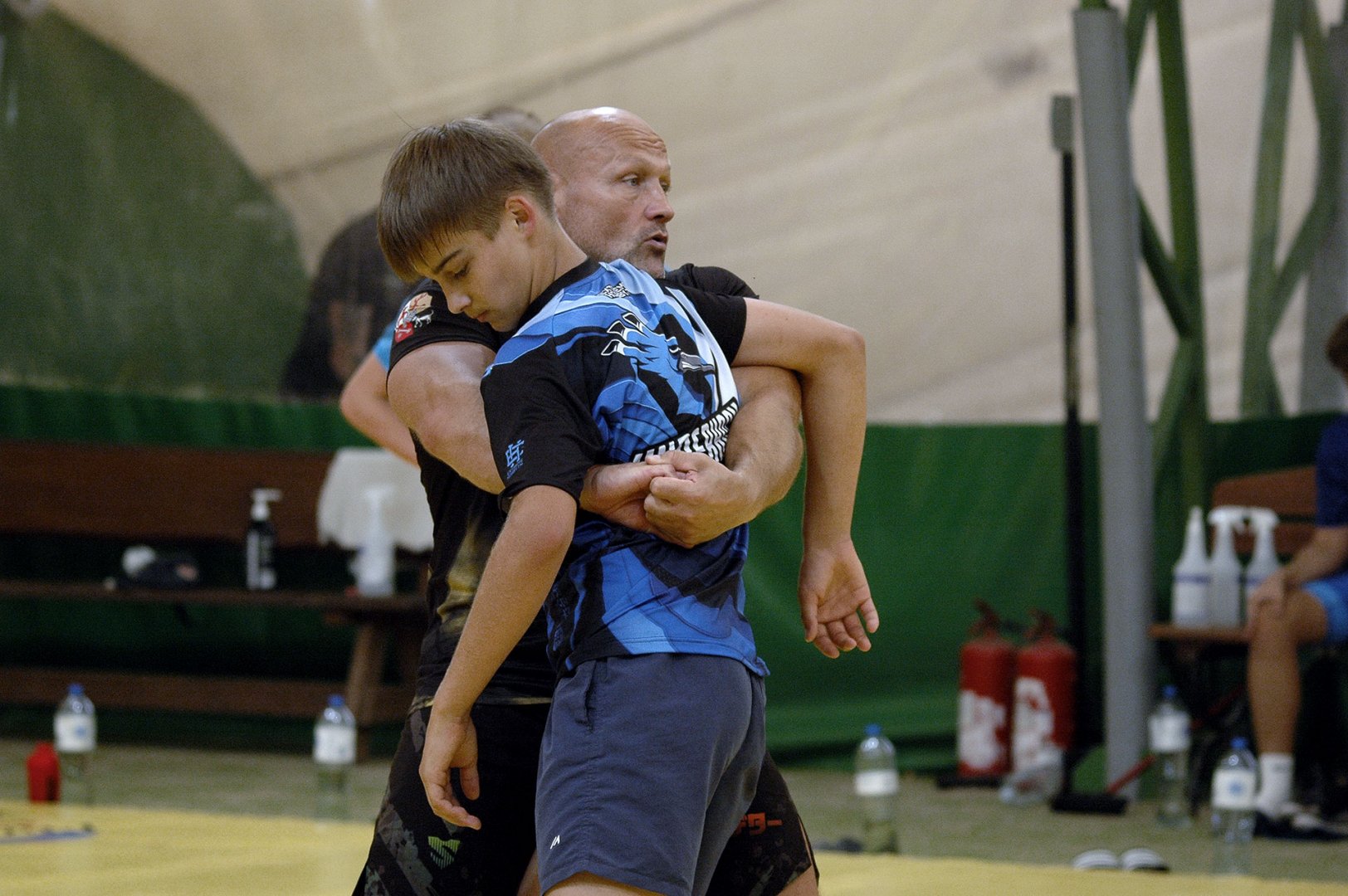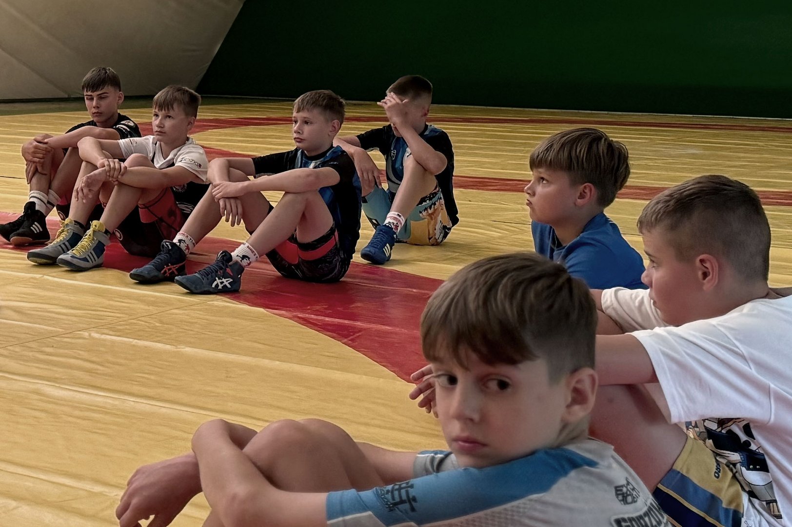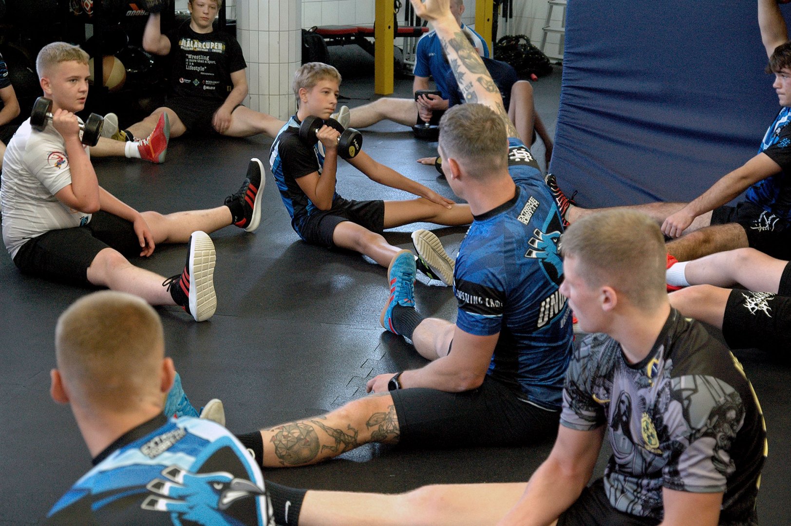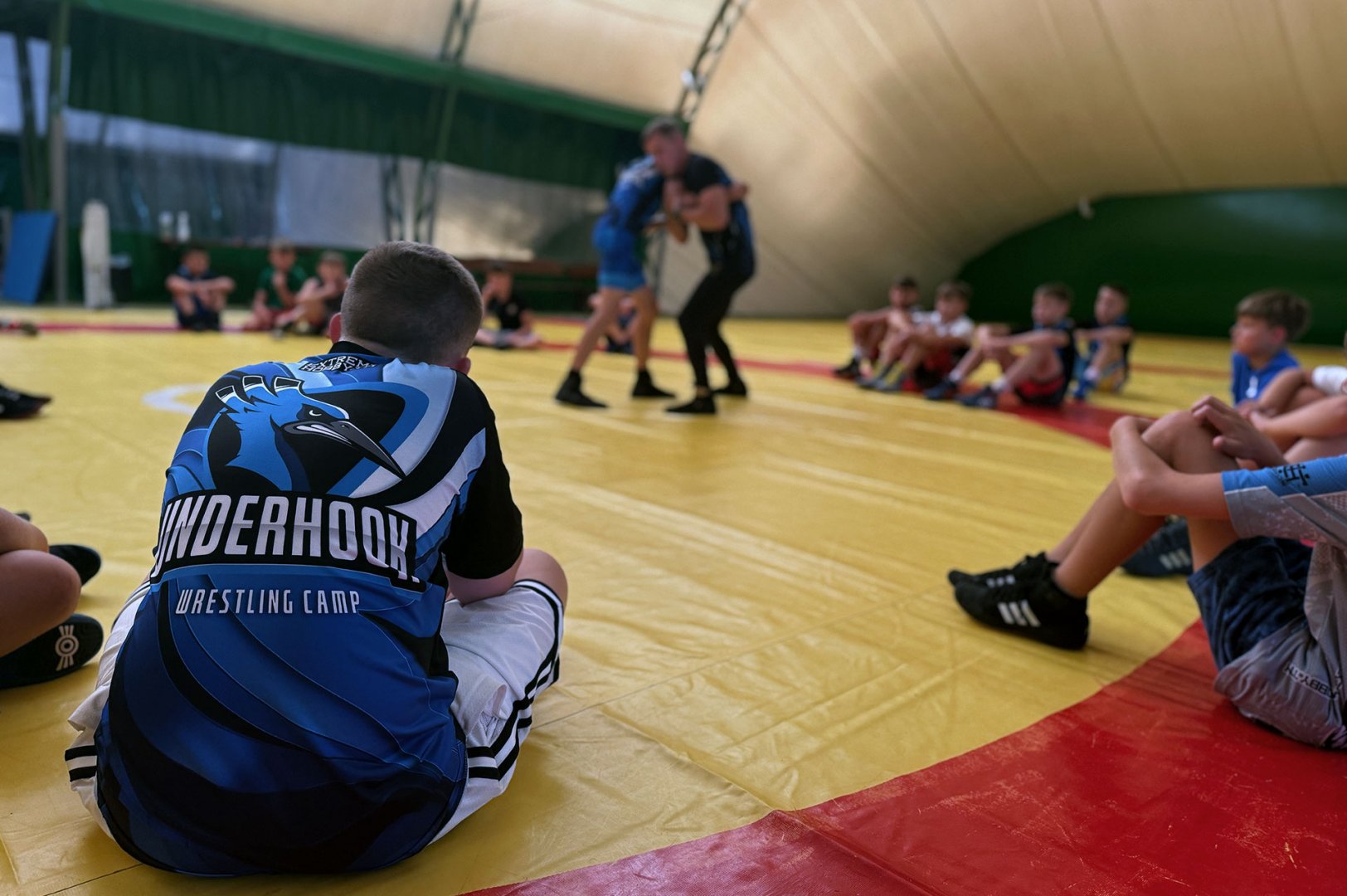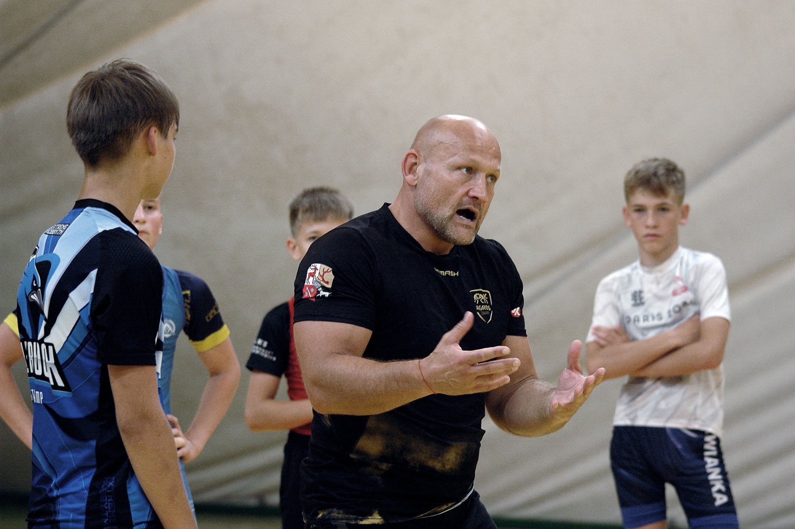 Grupa starszych zawodników pod wodzą trenerów Radosława Grzybickiego, Macieja Korochody i Mariusza Torbiczuka. rozpoczęła dzień zajęciami na macie o godzinie 11:00.