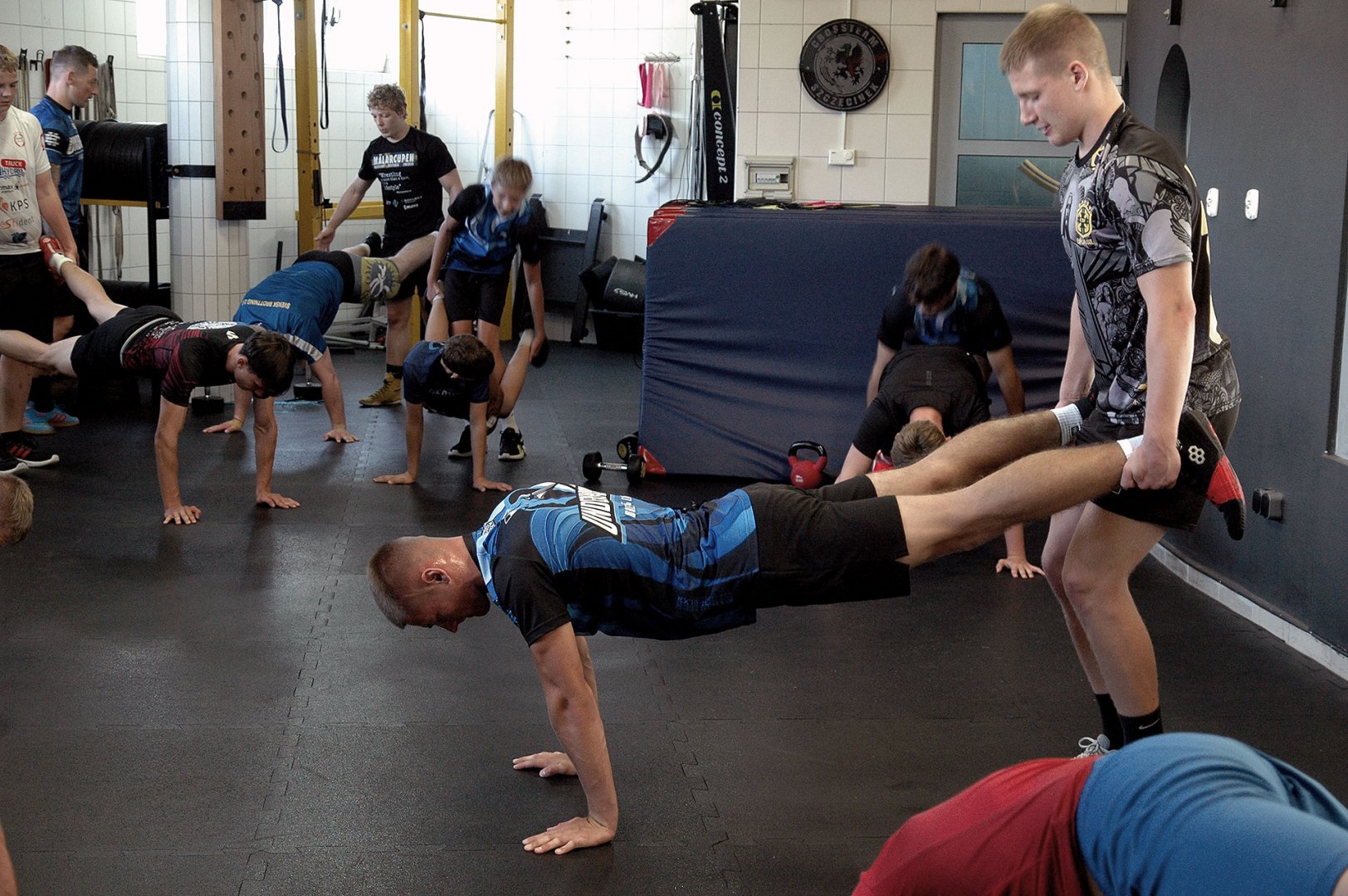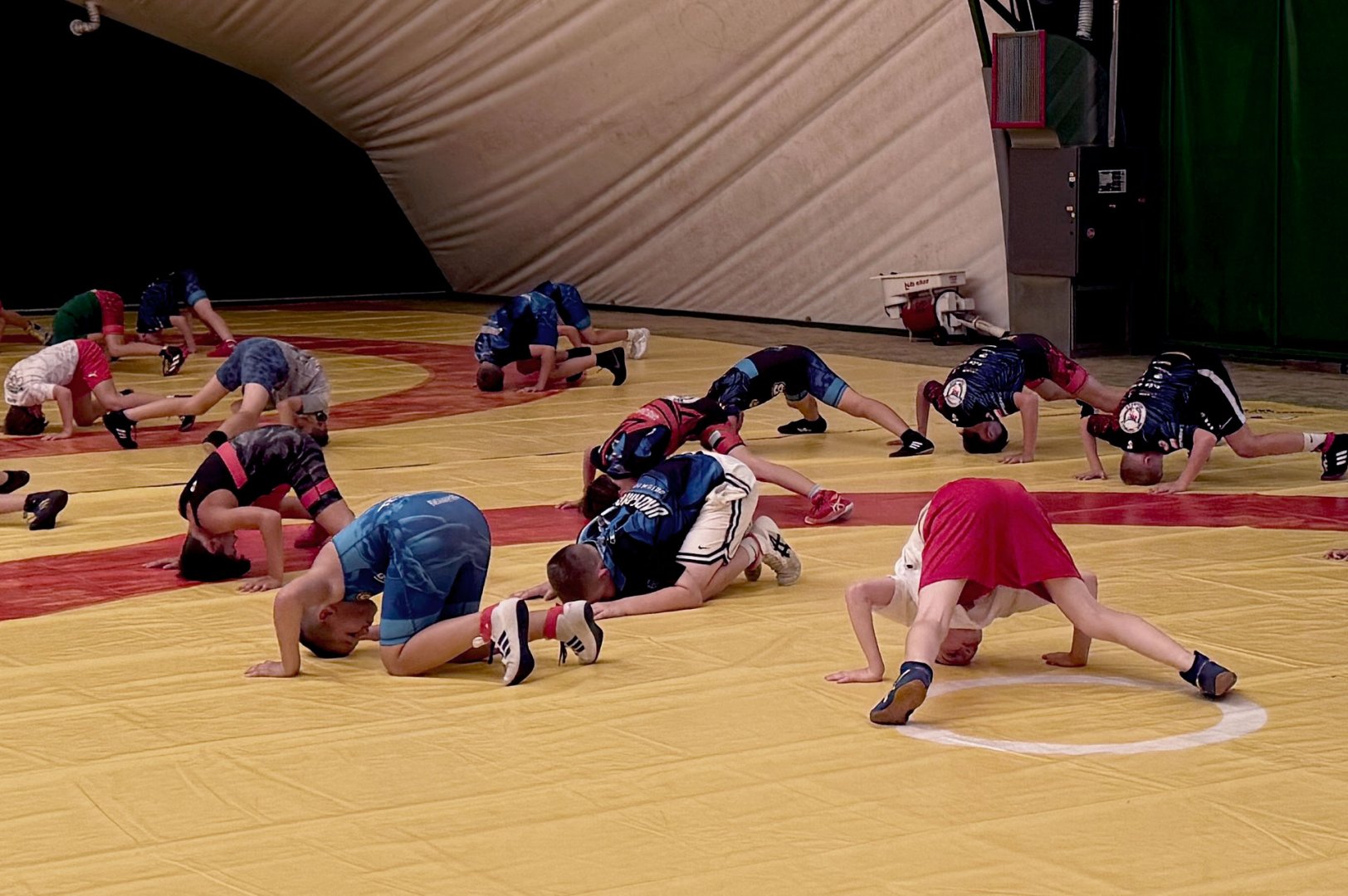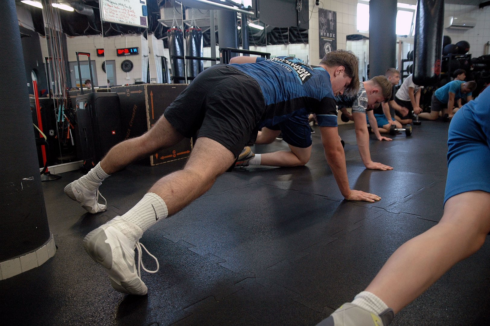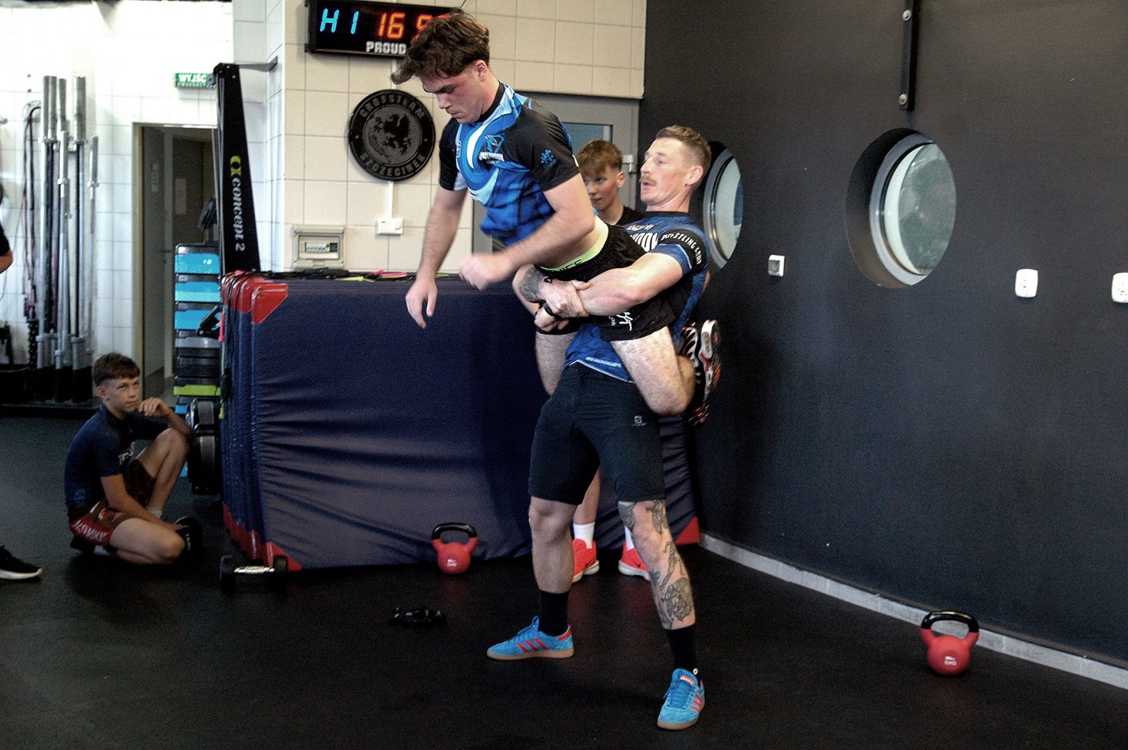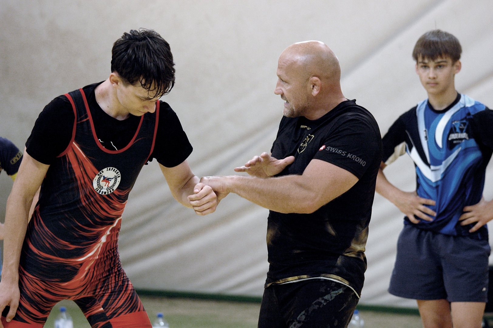 Grupa starszych zawodników pod wodzą trenerów Radosława Grzybickiego, Macieja Korochody i Mariusza Torbiczuka. rozpoczęła dzień zajęciami na macie o godzinie 11:00.