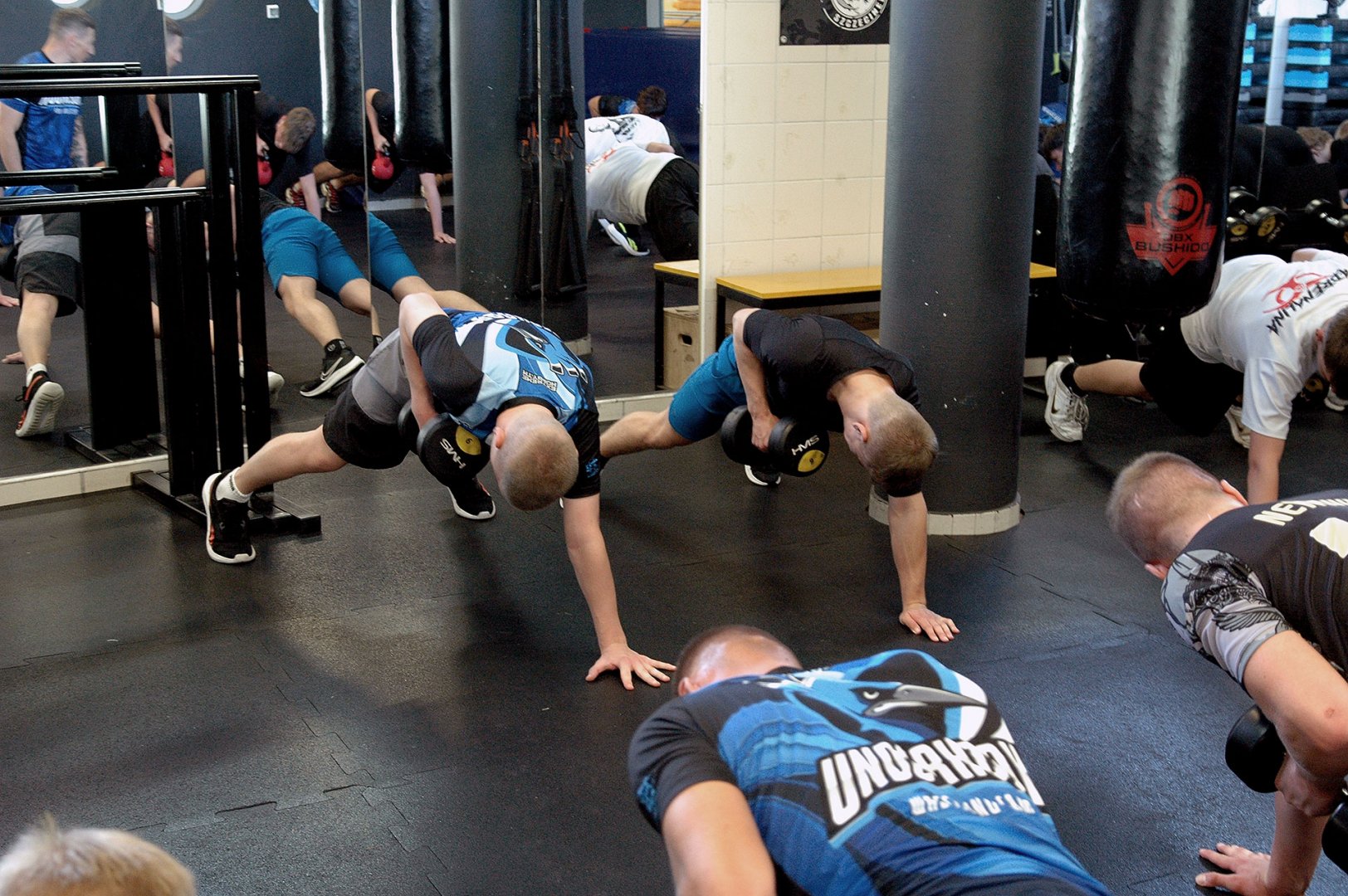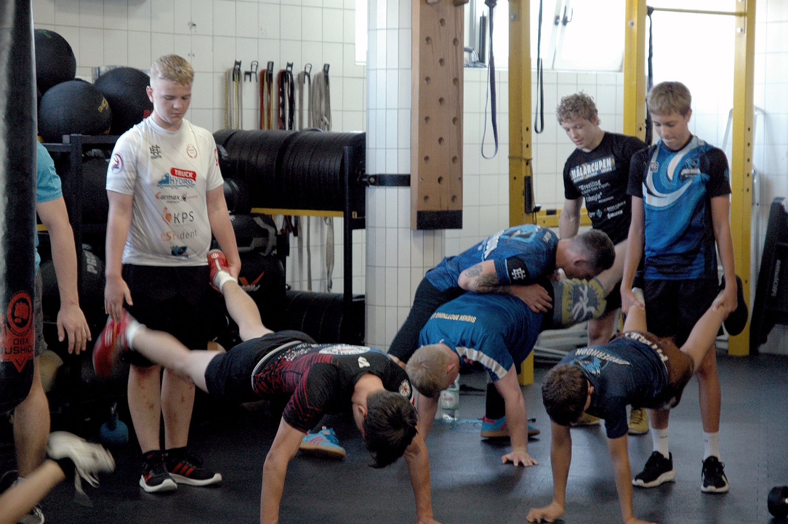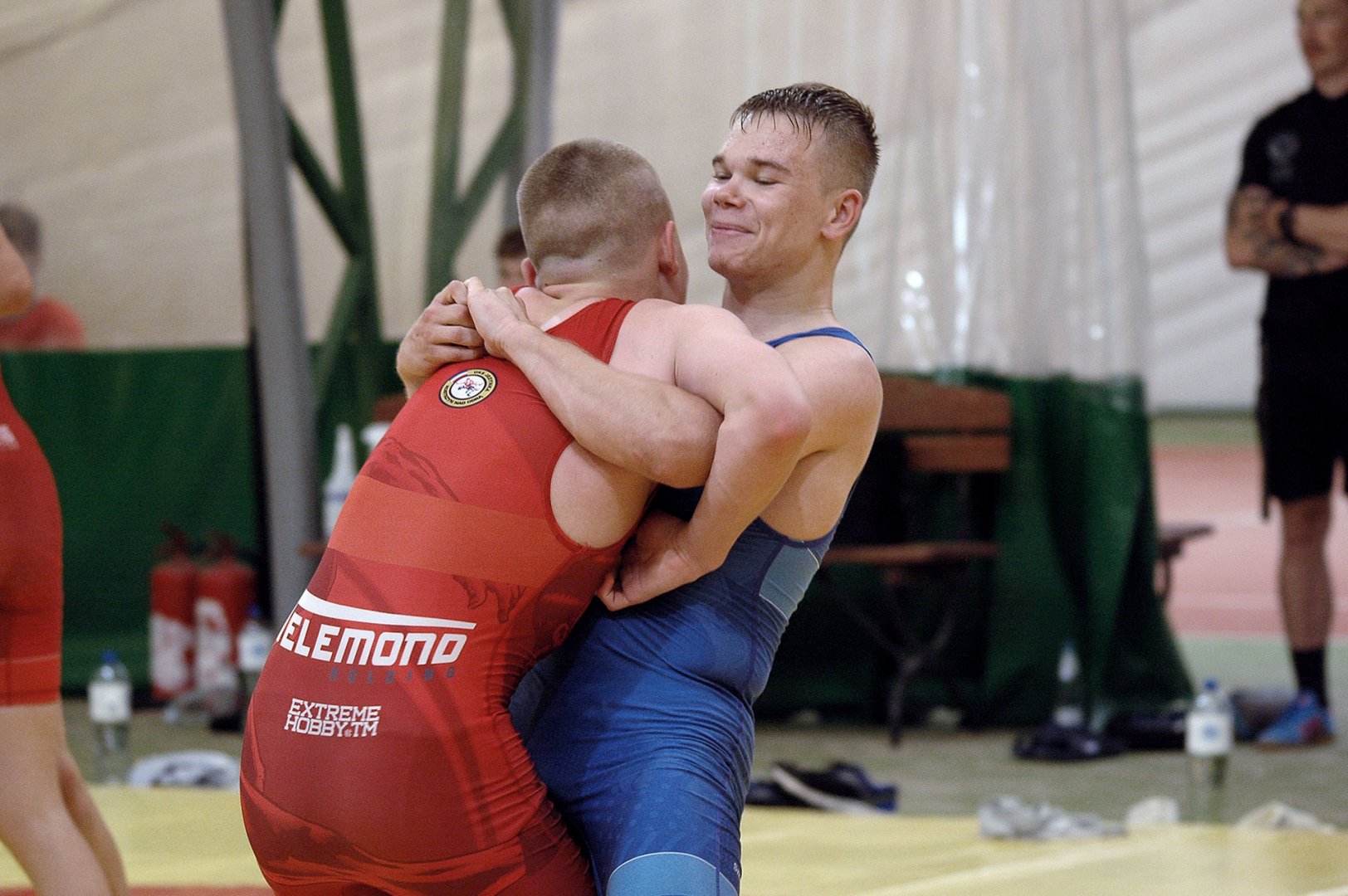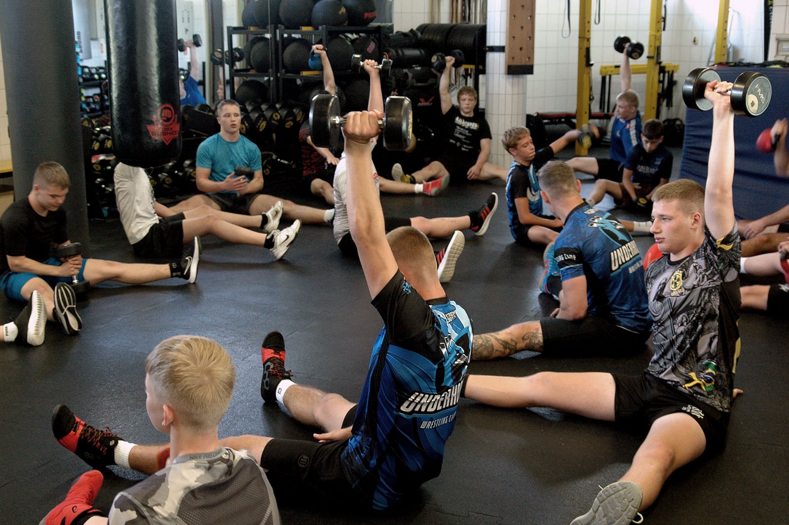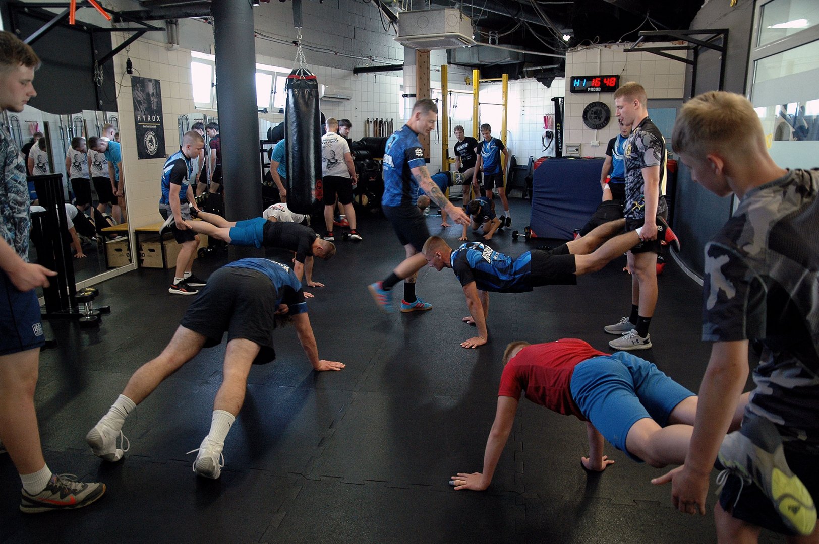 Grupa starszych zawodników pod wodzą trenerów Radosława Grzybickiego, Macieja Korochody i Mariusza Torbiczuka. rozpoczęła dzień zajęciami na macie o godzinie 11:00.