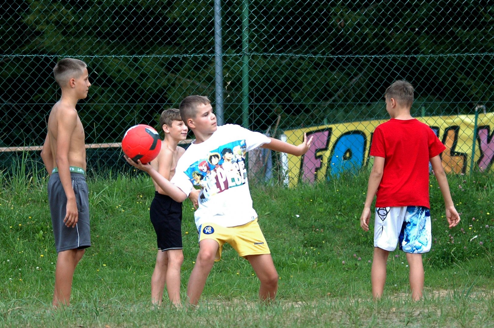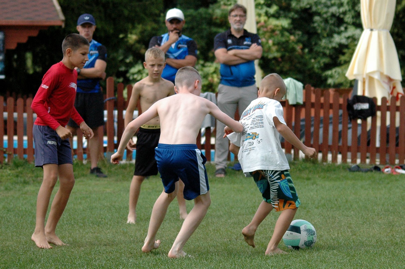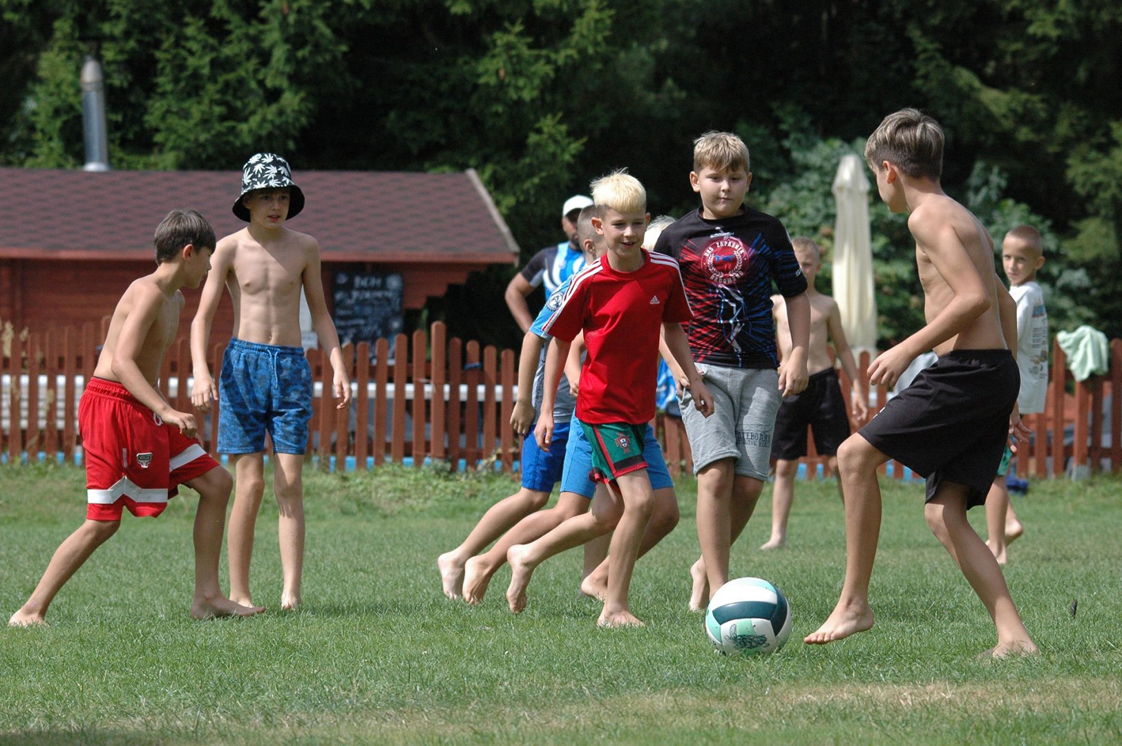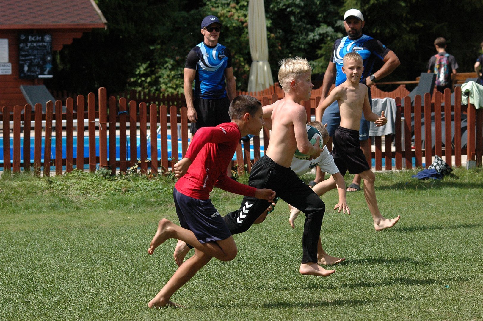 Młodsza grupa rozpoczęła dzień pracy treningowej o godzinie 11:00 zajęciami z trenerem motywacji Adamem Sulimskim. Po zajęciach "statycznych", pod okiem trenerów Artura Żołny, Konrada Terki, Mariusza Torbiczuka i Adama Sulimskiego ekipa została podzielona na dwa składy i rozpoczęły się zajęcia na boiskach do piłki nożnej i siatkówki.
